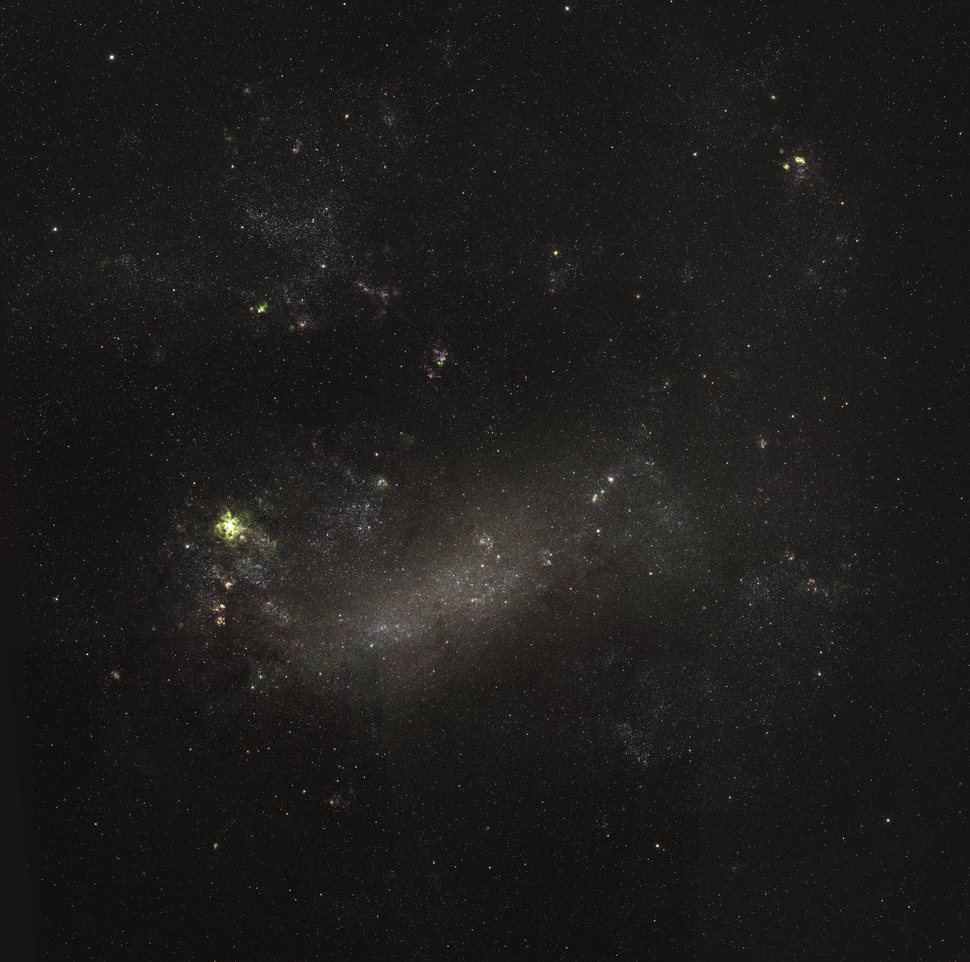 Mosaic image of the LMC in R+Hα (red), V+OIII (green) and B (blue) with data from MCSF.