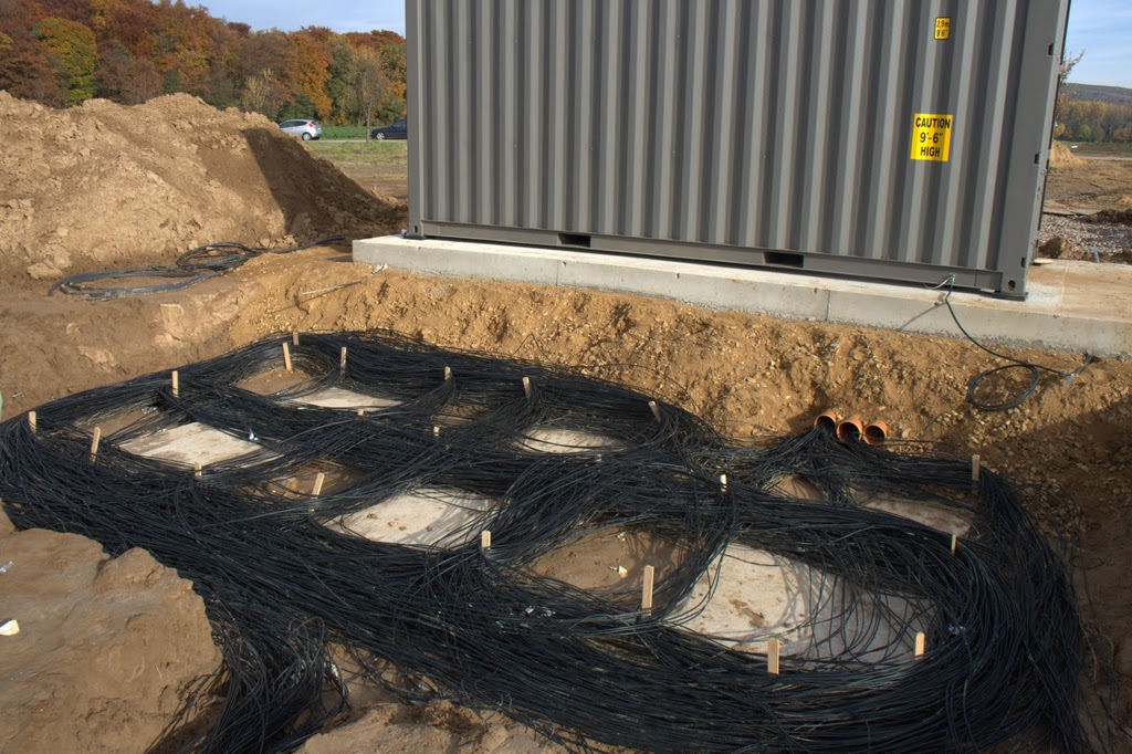 Das vorbereitete Feld. Die späteren Lücken zwischen den Antennen werden mit einem Vlies abgedeckt, um den Wuchs von Vegetation zu verhindern. (M. Jütte)